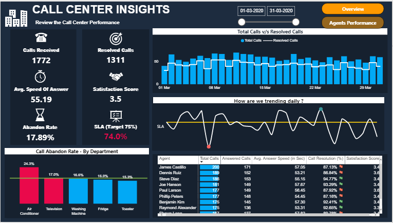 This report Review the Call Center Performance and Agent Performance.