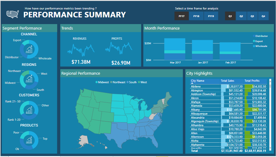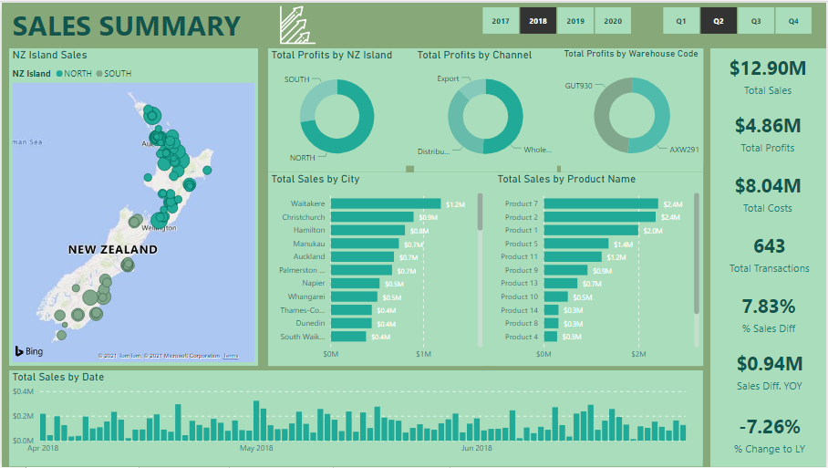 This report gives analytics about Revenue, Total Profit, Growth compared to the year before, and Profit Margins by customer.