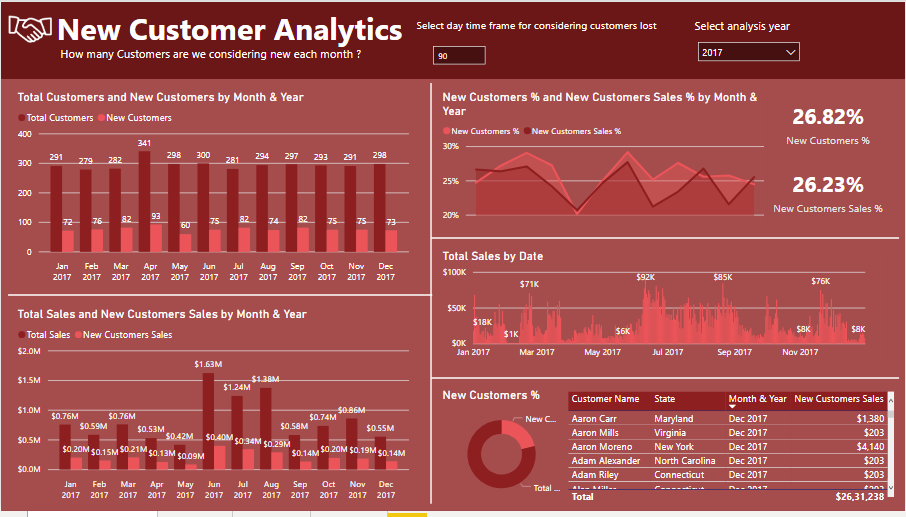 This report gives analytics about New Customer Sales, Lost Customers and Total Sales.
