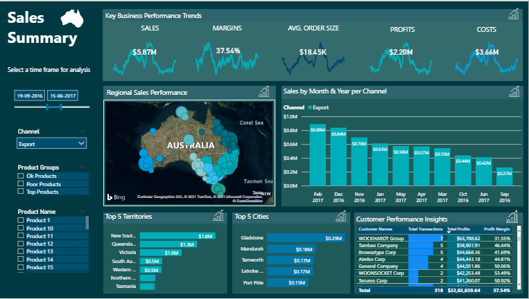 This report gives analytics about how the territory is performing in terms of sales, growth, sales versus Budget and Gross Profit.